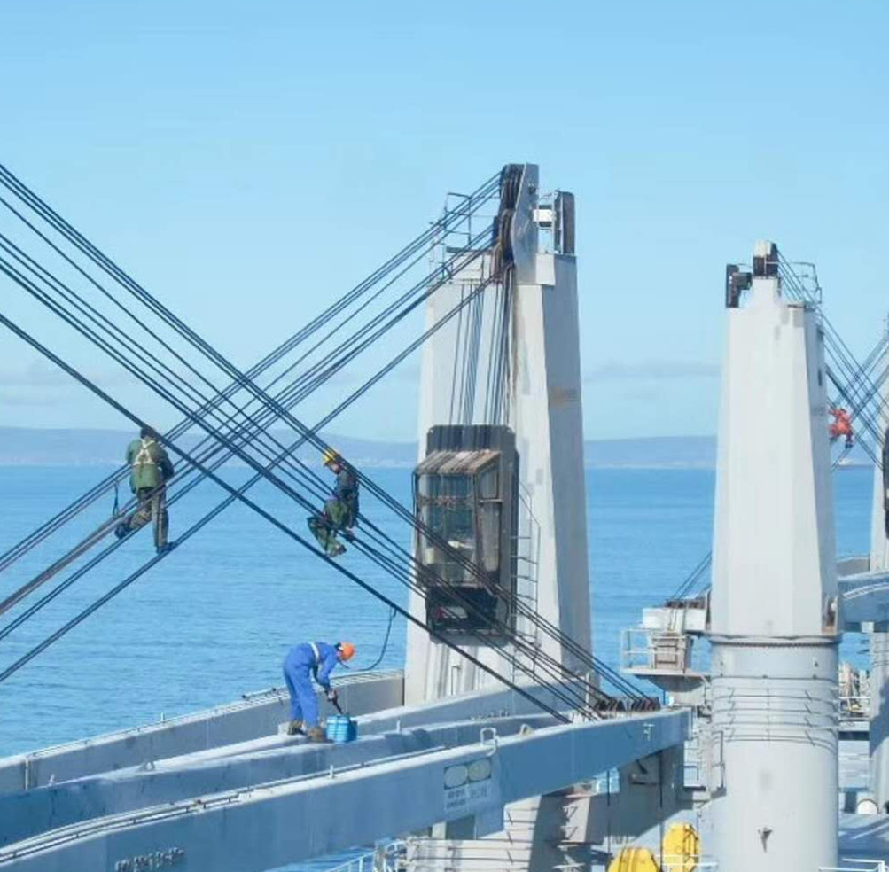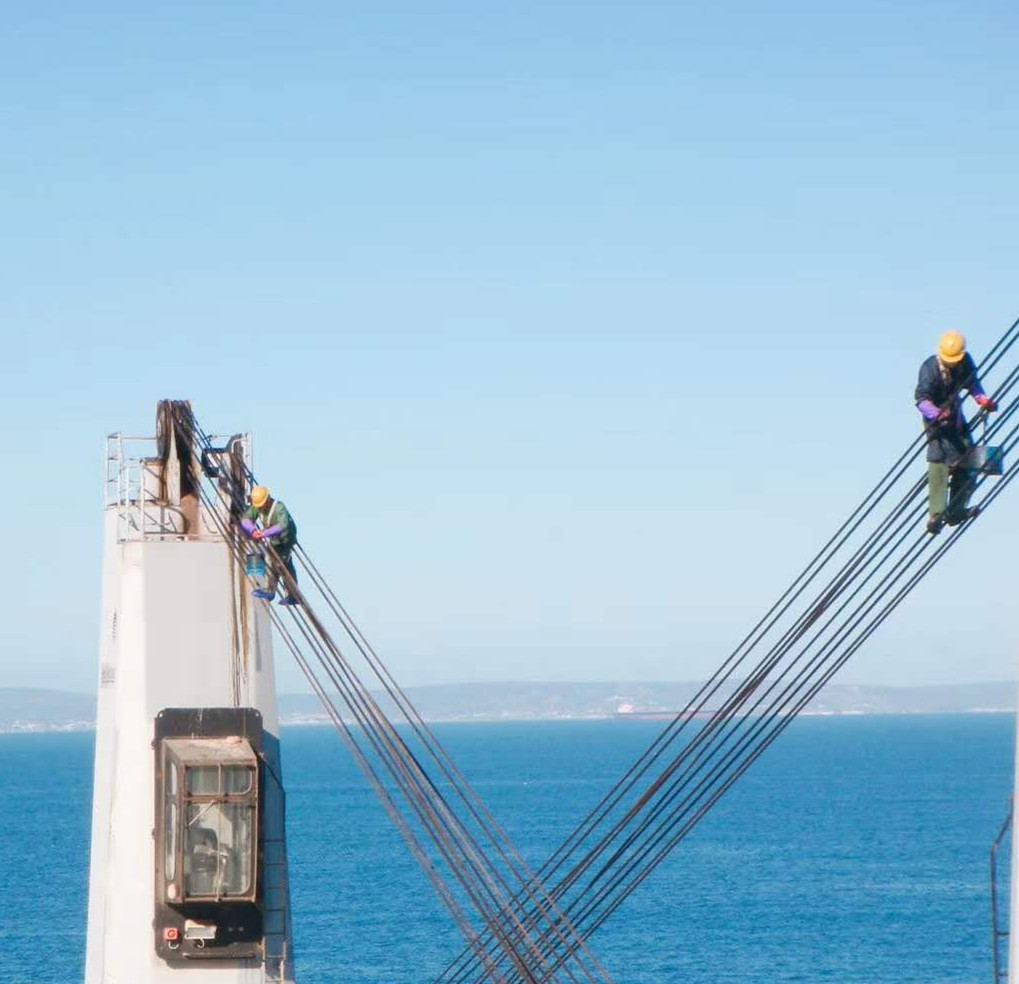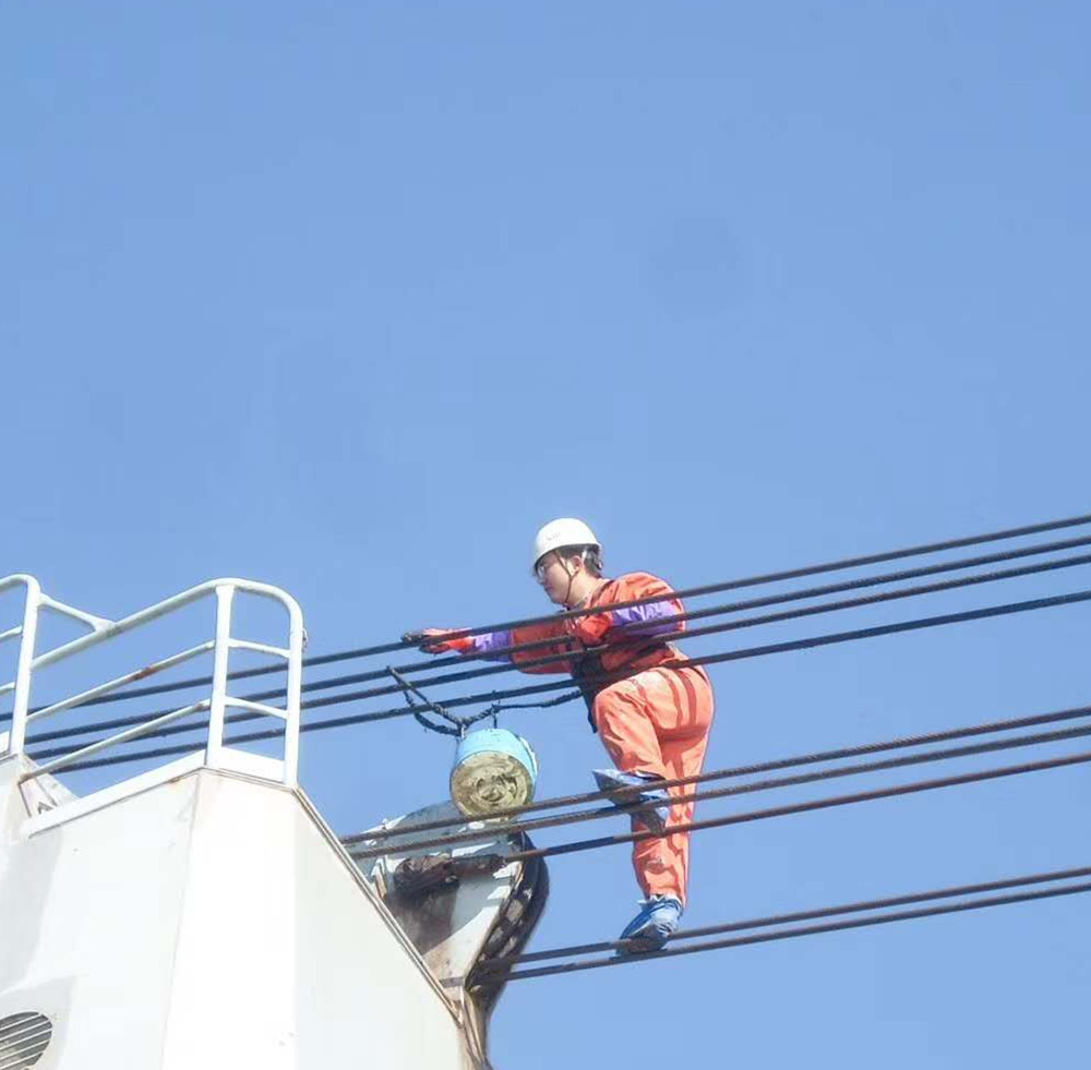 我的海船我的家,圖為船員們?cè)诤I细咧凶鳂I(yè),維護(hù)保養(yǎng)我們的“家”。