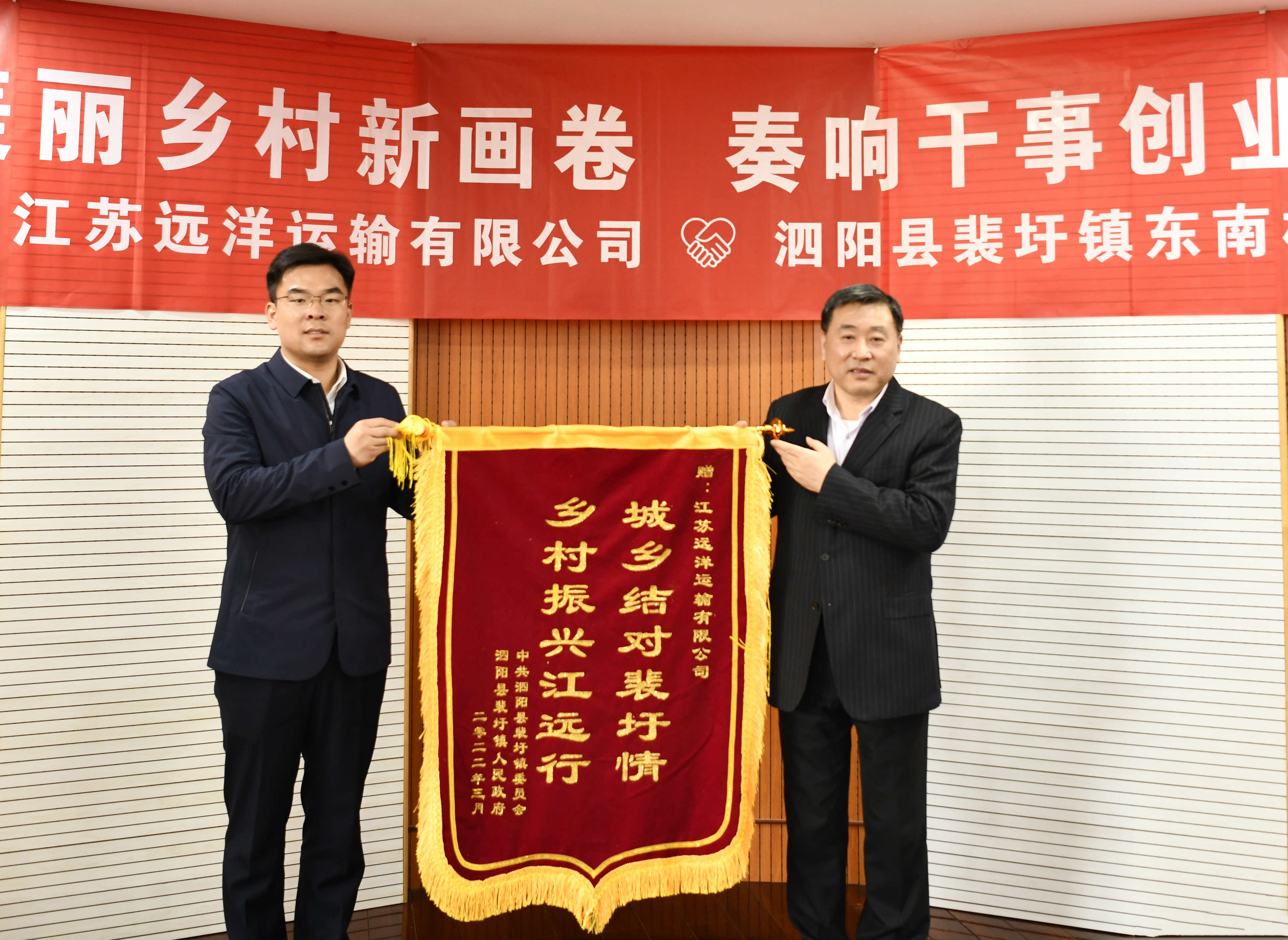 3月10日,泗陽縣裴圩鎮(zhèn)黨委副書記、鎮(zhèn)長張弛,省委駐泗陽縣幫促工作隊(duì)隊(duì)員、裴圩鎮(zhèn)東南村第一書記管俊俊一行,赴江蘇遠(yuǎn)洋座談交流并為公司贈(zèng)送“城鄉(xiāng)結(jié)對(duì)裴圩情,鄉(xiāng)村振興江遠(yuǎn)行”錦旗。公司黨委書記、董事長晁陽接受錦旗并參加座談,公司黨委副書記郭玉高,黨委組織部(人力資源部)、紀(jì)律監(jiān)督室、辦公室(董事會(huì)辦公室)相關(guān)負(fù)責(zé)人參加座談。
