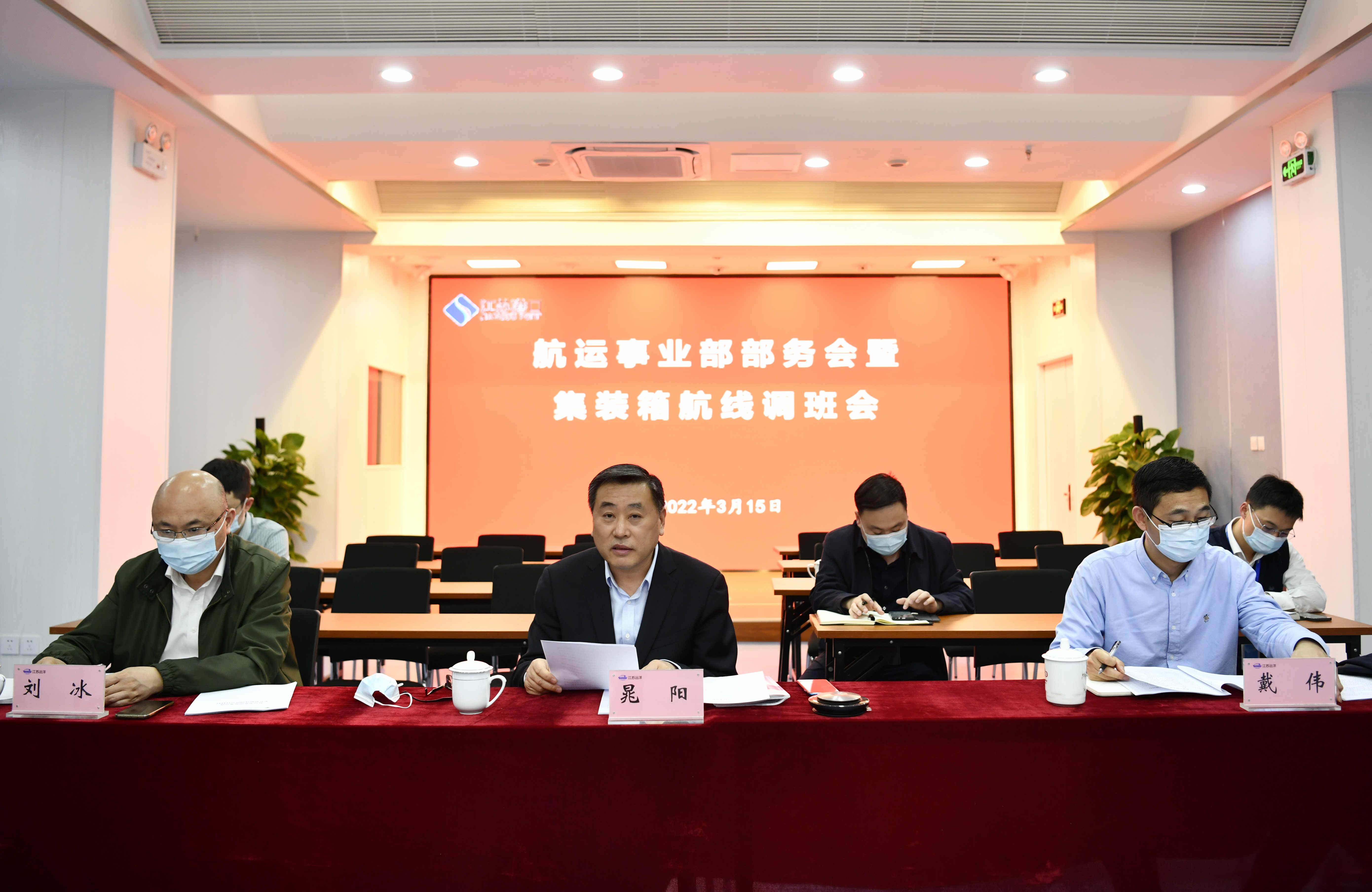 3月15日下午,省港口集團(tuán)航運(yùn)事業(yè)部召開部務(wù)會(huì),集團(tuán)分管領(lǐng)導(dǎo)、生產(chǎn)業(yè)務(wù)部(總調(diào)度室)領(lǐng)導(dǎo)應(yīng)邀出席并講話,事業(yè)部相關(guān)負(fù)責(zé)人參加會(huì)議。集裝箱公司、蘇州港、連云港港、鹽城港、徐州港、淮安港、宿遷港和南京港龍?zhí)洞a頭等港方代表應(yīng)邀參加。航運(yùn)事業(yè)部部長(zhǎng),江蘇遠(yuǎn)洋黨委書記、董事長(zhǎng)晁陽主持會(huì)議。