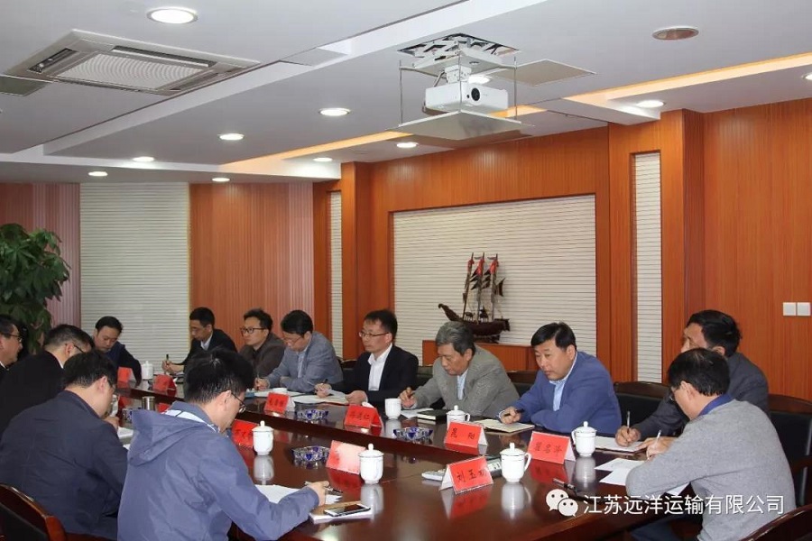 4月4日下午,省港口集團(tuán)黨委副書記、副總經(jīng)理王樹華一行召集集團(tuán)旗下四家航運(yùn)企業(yè)在江蘇遠(yuǎn)洋進(jìn)行調(diào)研座談。省港口集團(tuán)投資規(guī)劃部部長朱從富、副部長萬文智,綜合信息部副部長顧國華,公司總經(jīng)理毛雪強(qiáng),太倉海運(yùn)總經(jīng)理晁陽,遠(yuǎn)東海運(yùn)董事長符道仁,南京通??偨?jīng)理李斌,省港口集團(tuán)相關(guān)部門人員,公司經(jīng)營層其他人員等參加了調(diào)研座談。