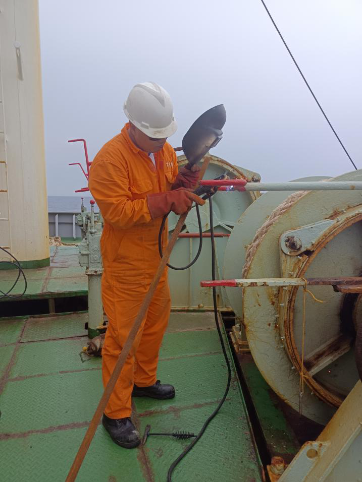一絲不茍的海上焊接工作,天再熱都要穿好工作服,暴熱天氣下也要刷漆。