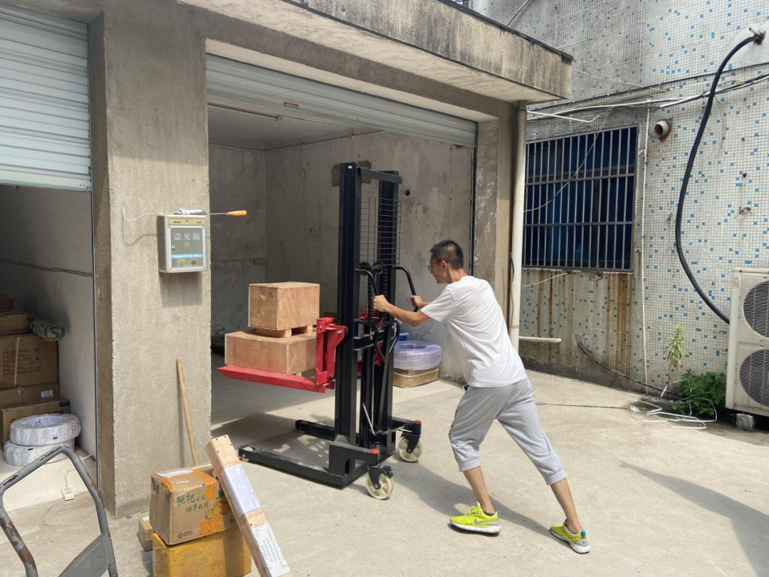 氣溫42℃,江陰公司供船部助理徐凱在倉(cāng)庫(kù)裝卸供船備件。