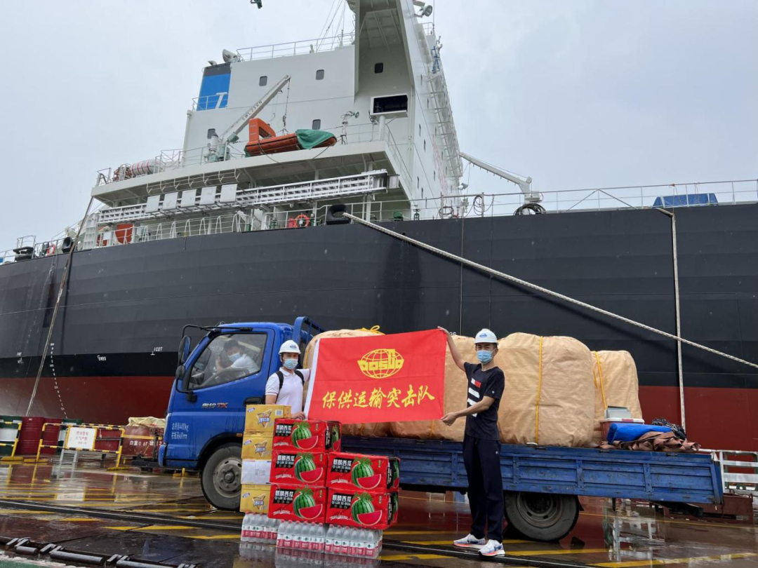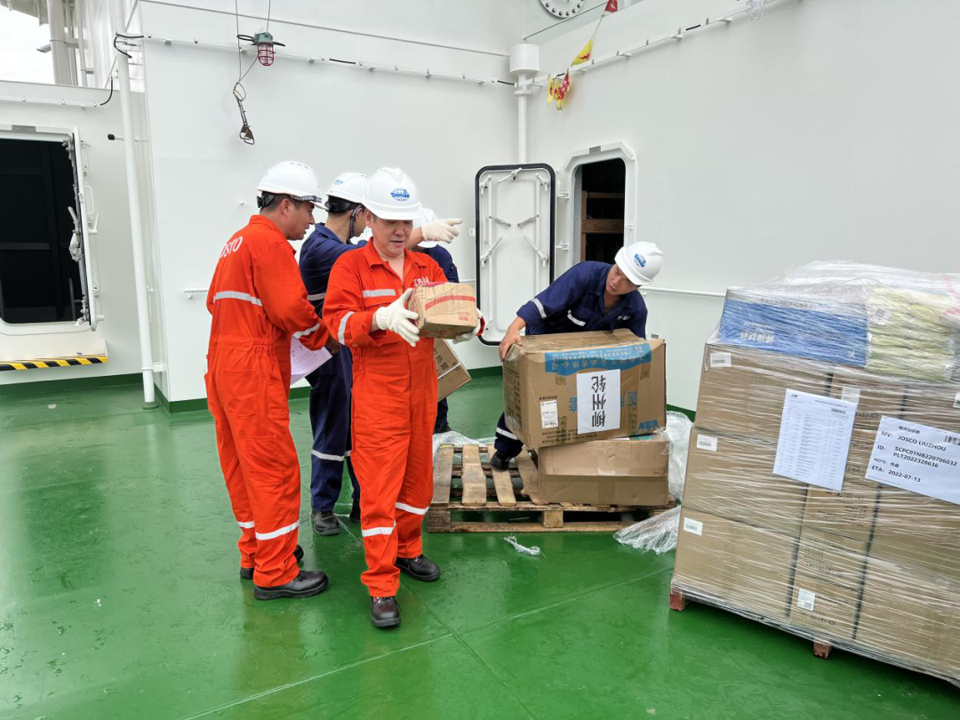 副總經(jīng)理潘良杰帶隊與供船部經(jīng)理郭慶一道,指揮調度物料供給全程。