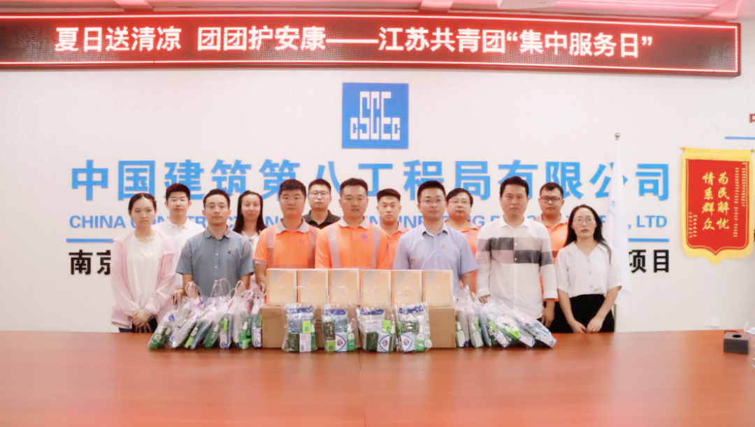 7月23日正值大暑,江蘇遠(yuǎn)洋團(tuán)委與南京市湖南路街道團(tuán)工委聯(lián)合開(kāi)展“夏日送清涼,團(tuán)團(tuán)護(hù)安康”一線慰問(wèn)活動(dòng),攜手為堅(jiān)守在烈日高溫下的建筑工人送去夏日清涼。團(tuán)省委、湖南路街道團(tuán)工委工作人員、中建八局職工代表及江蘇遠(yuǎn)洋團(tuán)委團(tuán)員代表20余人參加活動(dòng)。