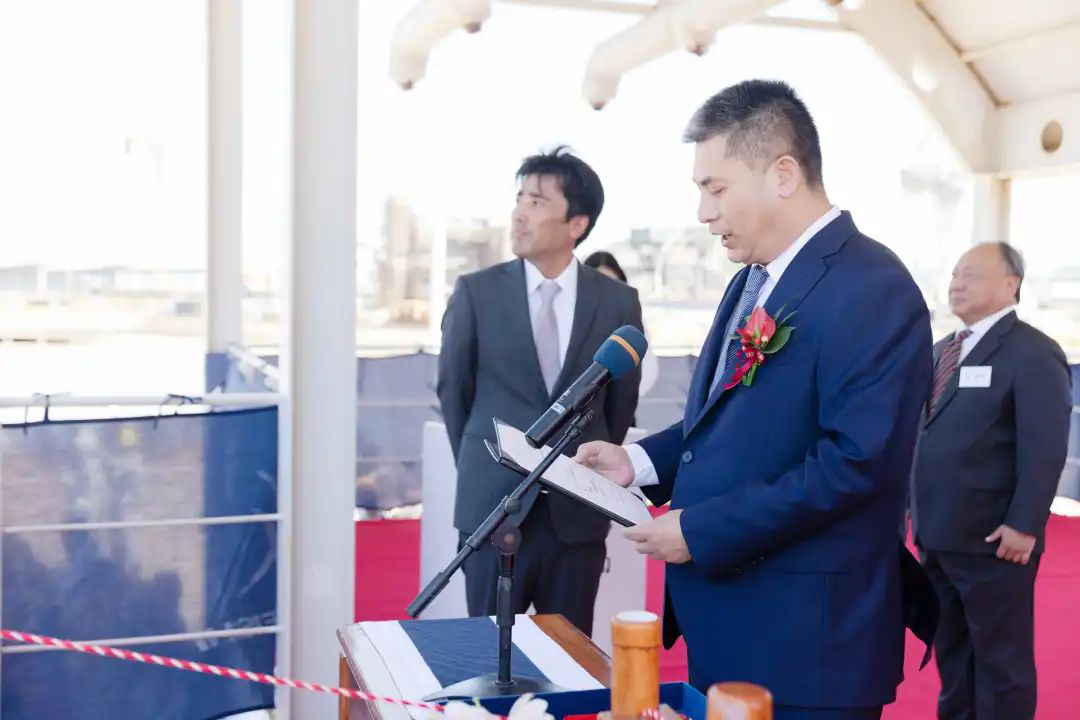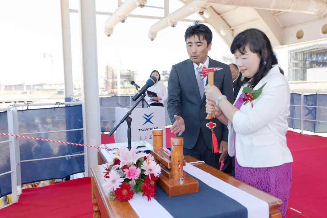 8月5日,江蘇遠(yuǎn)洋投資建造的1100箱位新型節(jié)能環(huán)保集裝箱船“江遠(yuǎn)遠(yuǎn)健”輪在舟山常石船廠命名交付。江蘇遠(yuǎn)洋黨委書記、董事長(zhǎng)晁陽,副總經(jīng)理劉海燕,紀(jì)委書記丁邦林、專務(wù)瞿名澤,常石集團(tuán)(舟山)造船有限公司常務(wù)副總經(jīng)理村上佳史、副總經(jīng)理李家亮出席命名交付儀式。