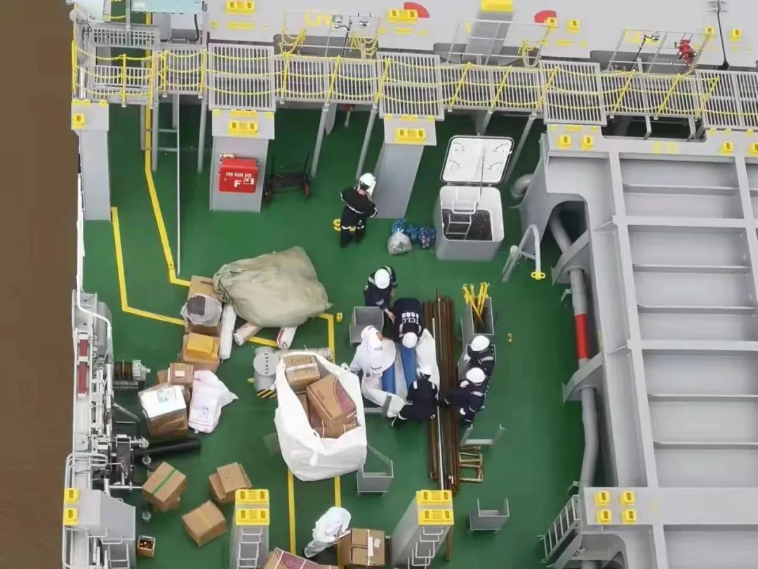 9月3日,第二批接船船員冒雨抵達(dá)秀山,在躲避臺(tái)風(fēng)的同時(shí)完成了三天兩次核酸檢測(cè)。臺(tái)風(fēng)過(guò)后,經(jīng)協(xié)商要進(jìn)行第二次試航,原計(jì)劃9月6日清關(guān)之后供物料和綁扎件,現(xiàn)在只能推遲了。9月7日早上,第一批試航的9名船員再次登船參加第二次試航,于8日上午順利完成第二次試航任務(wù)返回青山碼頭。