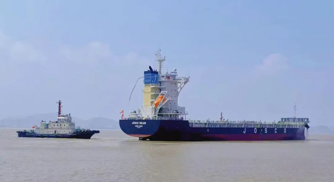 中午,隨著最后一根纜繩離開(kāi)常石船廠的纜樁,螺旋槳轉(zhuǎn)動(dòng)起來(lái),向后推開(kāi)水花,“江遠(yuǎn)遠(yuǎn)慧”輪開(kāi)啟了她的首航。