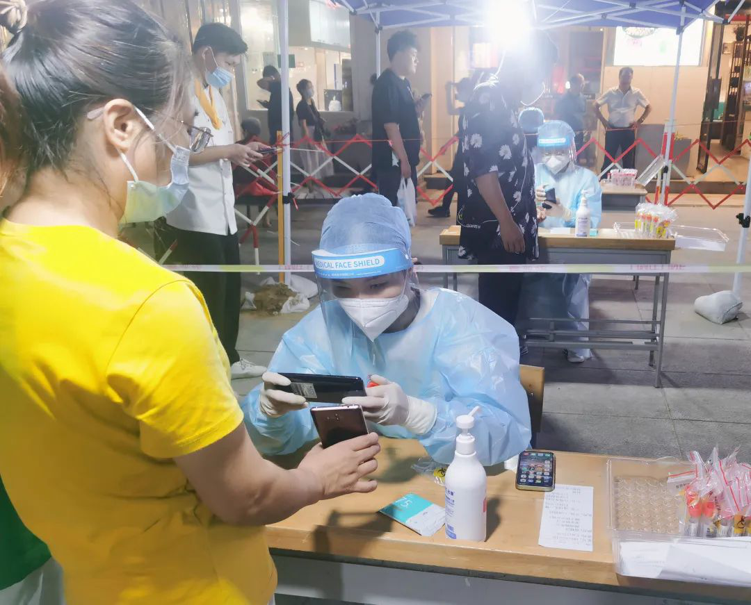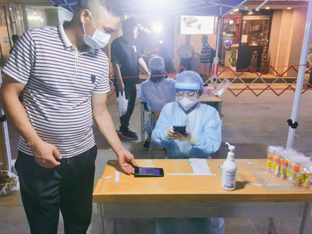 “您好,這邊先登記一下信息”“您好,請出示核酸檢測碼”“您好……”,從晚上18點至22點,志愿者們耐心細致登記人員信息,及時解答疑問,用實際行動詮釋新時代共產(chǎn)黨員的責任與擔當。