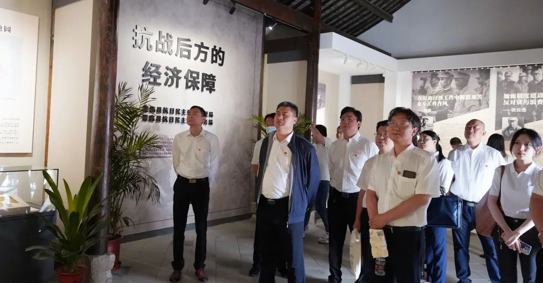 伴隨著基地工作人員的解說,大家先后參觀了溧高縣委縣政府、革命烈士紀(jì)念碑、溧高縣紡織廠等13處場館。溧高縣抗日民主政府大會堂原址位于進(jìn)村口,場館呈現(xiàn)了抗戰(zhàn)時期的會議場景。在廉政教育館中,大家在陳毅同志《關(guān)于反腐倡廉的重要講話前》和粟裕同志《在財(cái)經(jīng)經(jīng)濟(jì)工作中提倡艱苦奮斗工作作風(fēng)》的兩塊展板前駐足,現(xiàn)場接受以“全面從嚴(yán)治黨”為主題的廉政警示教育。