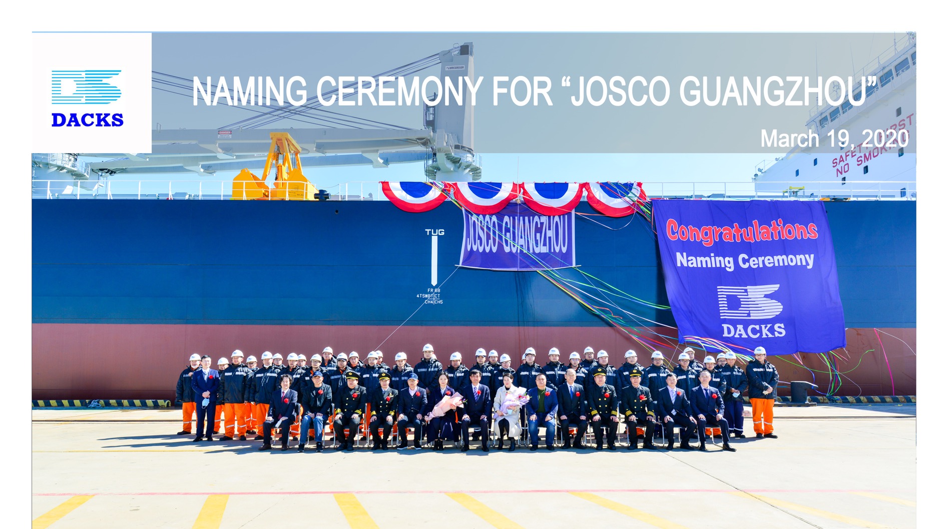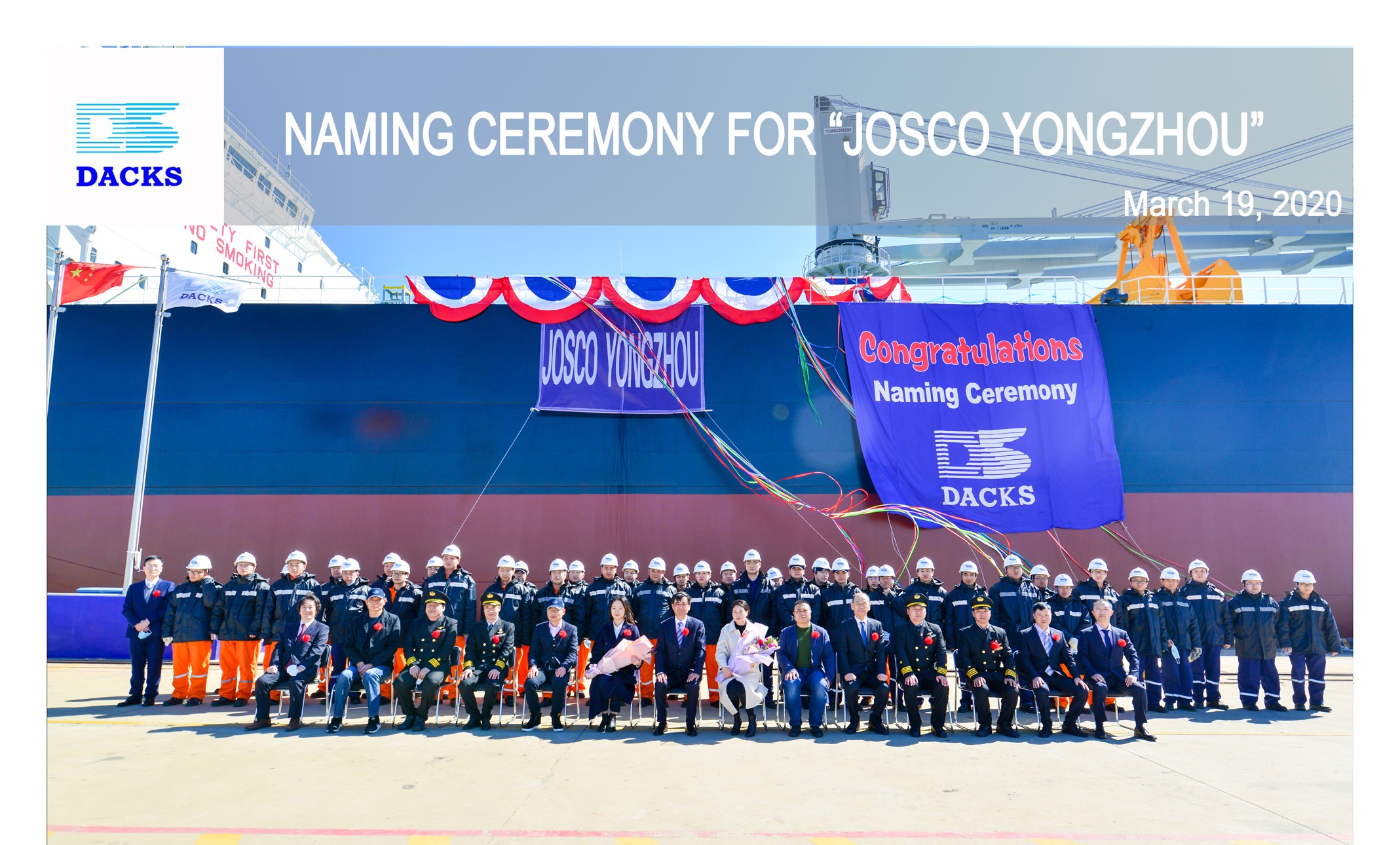 三月的大連,潮平岸闊,春意盎然。3月19日上午,在江蘇遠洋駐廠監(jiān)造師、NK驗船師和“江遠永州”“江遠廣州”輪船員等的共同見證下,一場特別的命名交船儀式在大連中遠海運川崎舾裝碼頭舉行。儀式簡潔莊重,現(xiàn)場吉祥熱烈。