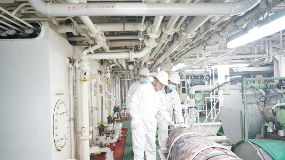 一年春作首,時(shí)光不等人。晁陽(yáng)一行深入船舶駕駛臺(tái)、甲板、機(jī)艙、生活區(qū)等場(chǎng)所,實(shí)地檢查了疫情防控措施落實(shí)情況,了解了船舶修理、壓載水系統(tǒng)加裝進(jìn)度等方面情況。在假期不停工的塢修現(xiàn)場(chǎng),遠(yuǎn)星輪全體船員不負(fù)春光,與時(shí)間賽跑,拼出“牛勁”,使出“牛力”。