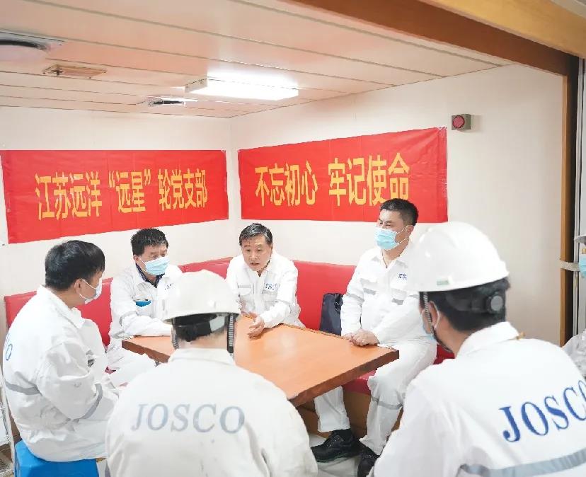 在黨員活動(dòng)室,晁陽(yáng)與船員深入交流,傾聽(tīng)一線職工心聲,了解船舶黨建工作、班組建設(shè)、船舶管理、機(jī)器設(shè)備運(yùn)轉(zhuǎn)等情況,介紹了公司船員薪酬改革、福利保障、船岸人才交流等方面舉措。