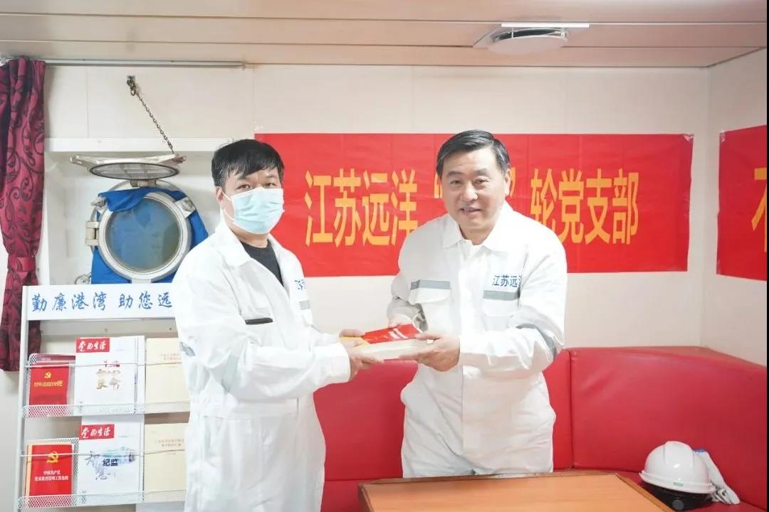 晁陽(yáng)向船舶黨支部贈(zèng)送了《黨的十九屆五中全會(huì)<建議>學(xué)習(xí)輔導(dǎo)百問(wèn)》等書籍,要求要認(rèn)真組織開(kāi)展黨史學(xué)習(xí)教育等黨建工作,切實(shí)關(guān)心關(guān)愛(ài)好船員,確保抓實(shí)抓好塢修進(jìn)度、質(zhì)量和安全等各項(xiàng)工作,在抓生產(chǎn)、創(chuàng)效益、保安全、育人才等各項(xiàng)工作中發(fā)揮船舶黨支部的戰(zhàn)斗堡壘作用,奮力推動(dòng)航運(yùn)一體化高質(zhì)量發(fā)展。