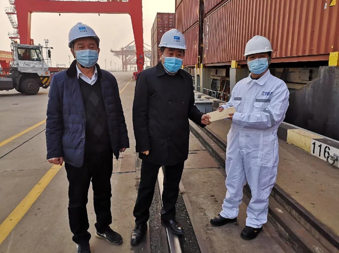 晁陽(yáng)、黃明軒還趕到南京港龍?zhí)洞a頭作業(yè)一線,為剛剛靠泊的“江遠(yuǎn)遠(yuǎn)星”輪全體船員送去新春?jiǎn)柡蚝妥8!?ldquo;在船工作很不容易,大家辛苦了!祝大家春節(jié)快樂!萬事如意!”晁陽(yáng)表示,船員隊(duì)伍是江蘇遠(yuǎn)洋建設(shè)和發(fā)展的主力軍,公司2020年取得的成績(jī)來之不易,感謝船員兄弟們?yōu)楣靖冻龅男燎趧趧?dòng)和做出的巨大貢獻(xiàn)。同時(shí)叮嚀大家,在當(dāng)前疫情防控的特殊時(shí)期,要繼續(xù)保持高度警惕,切實(shí)做好防護(hù),注意勞逸結(jié)合,確保安全,做到防疫生產(chǎn)兩不誤,為航運(yùn)事業(yè)再立新功。
