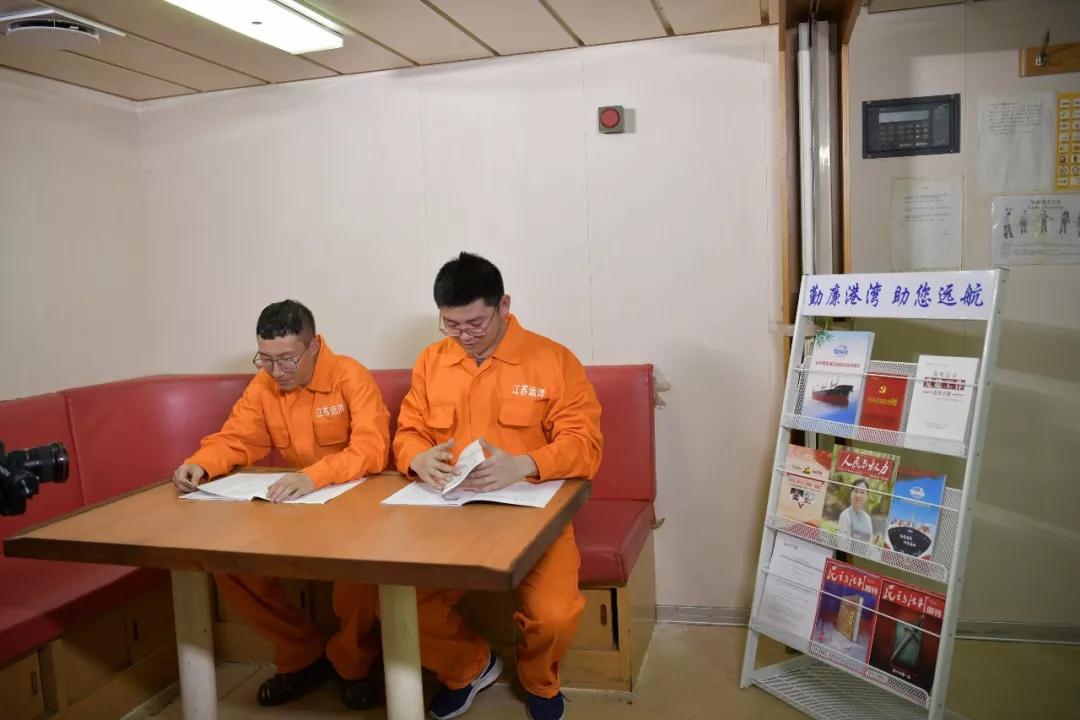 戴書記還了解了船舶伙食采購及大廚烹調(diào)情況,囑咐船舶領(lǐng)導(dǎo)注意安全環(huán)保和關(guān)心船員身體心理健康,并對全體船員的付出表示感謝。