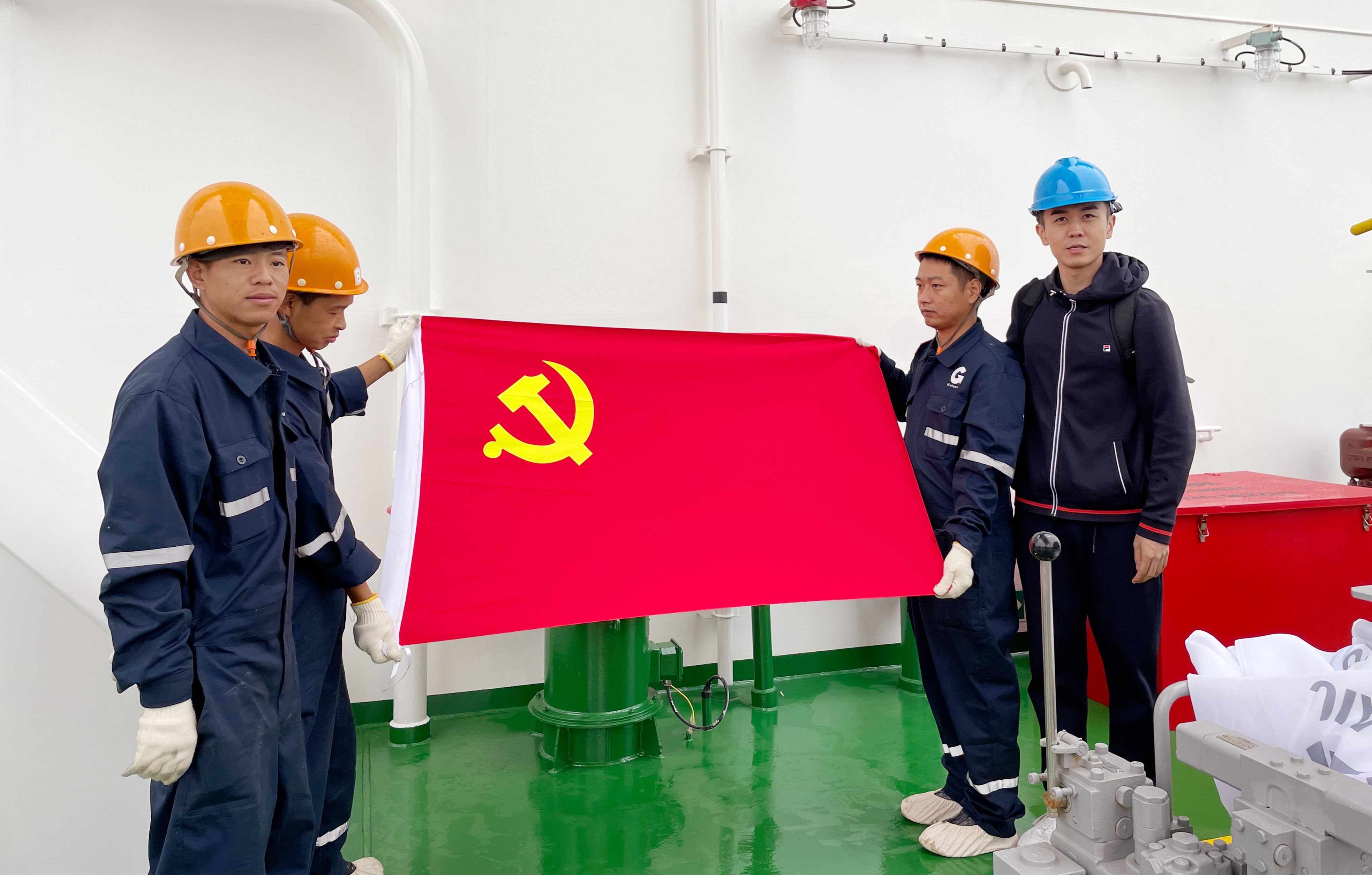 10月14日下午13時,雨后初晴。大連中遠海運川崎船廠的海面,分外平靜。海風吹來,休息區(qū)里船廠的工人們紛紛裹緊外套,感受到了來自北方深秋的陣陣涼意。而一旁靜靜靠泊的新造船“北部灣桂林”輪邊,來自江蘇遠洋省外輪供應公司黨支部的“保供運輸突擊隊”隊員們正不畏寒冷,在黨員郭慶帶領(lǐng)下,甩開膀子、熱火朝天地抓緊進行著船用物料供應。