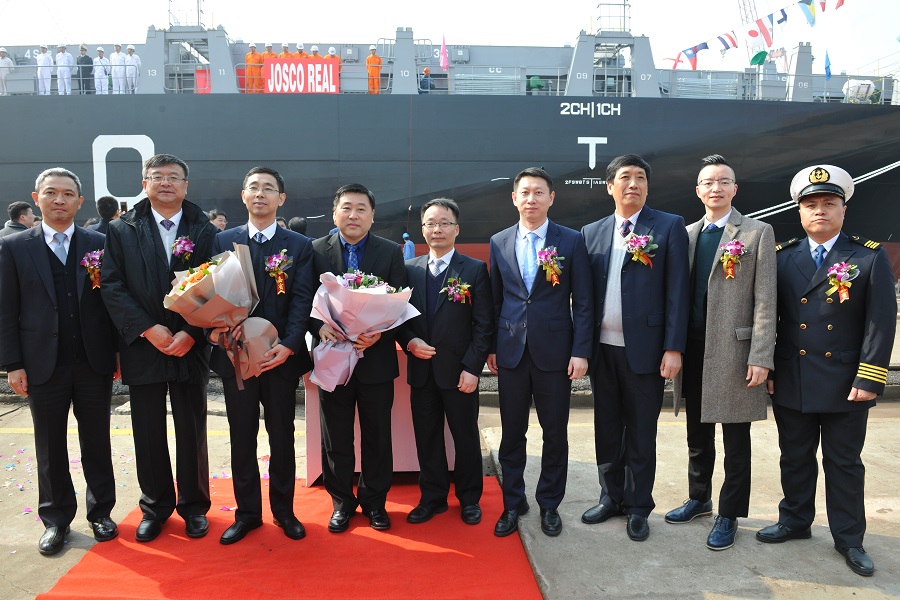 江蘇遠洋運輸有限公司總經(jīng)理毛雪強為新船命名交付致辭,公司紀(jì)委書記戴偉為新船命名,公司副總經(jīng)理、太倉海運集裝箱海運有限公司總經(jīng)理晁陽為新船砍纜開啟香檳。江蘇揚子江船業(yè)集團公司、德意志銀行以及日本船級社等相關(guān)單位的領(lǐng)導(dǎo)和嘉賓蒞臨儀式現(xiàn)場,共同見證了新船命名與交付。
