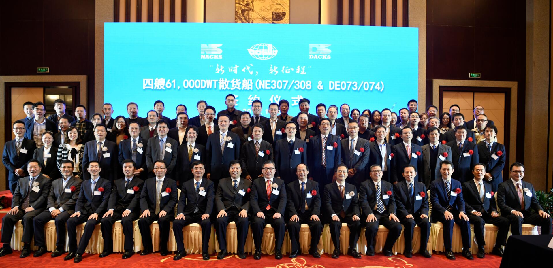 11月8日,江蘇遠(yuǎn)洋運(yùn)輸有限公司與南通/大連中遠(yuǎn)海運(yùn)川崎船舶工程有限公司4艘6.1萬(wàn)噸散貨船合同簽字儀式在南京舉行。