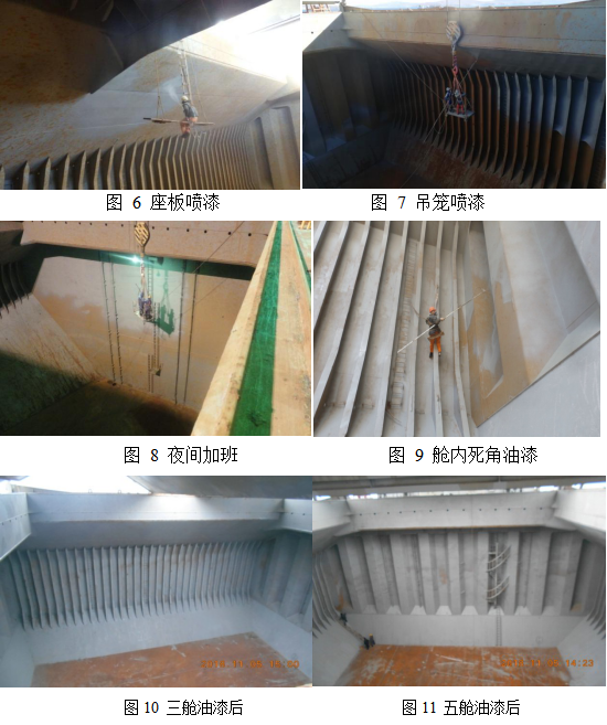 其六:船上人員集思廣益、群策群力。洗艙過程中海水沖艙、反手清洗、死角清理、爬高作業(yè);噴漆過程中坐板噴漆、吊籠噴漆、稀釋調(diào)漆;水密測驗中耐心細致,注重細節(jié),不放過任何一個死角,不放過任何一處驗艙隱患。