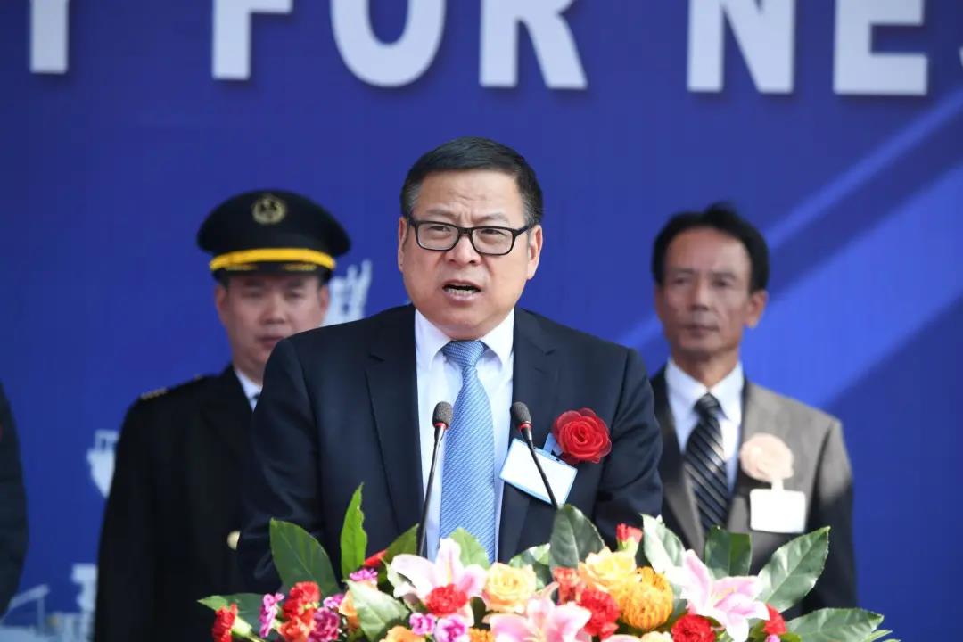 江蘇遠(yuǎn)洋黨委書(shū)記、董事長(zhǎng)晁陽(yáng)為新船命名。