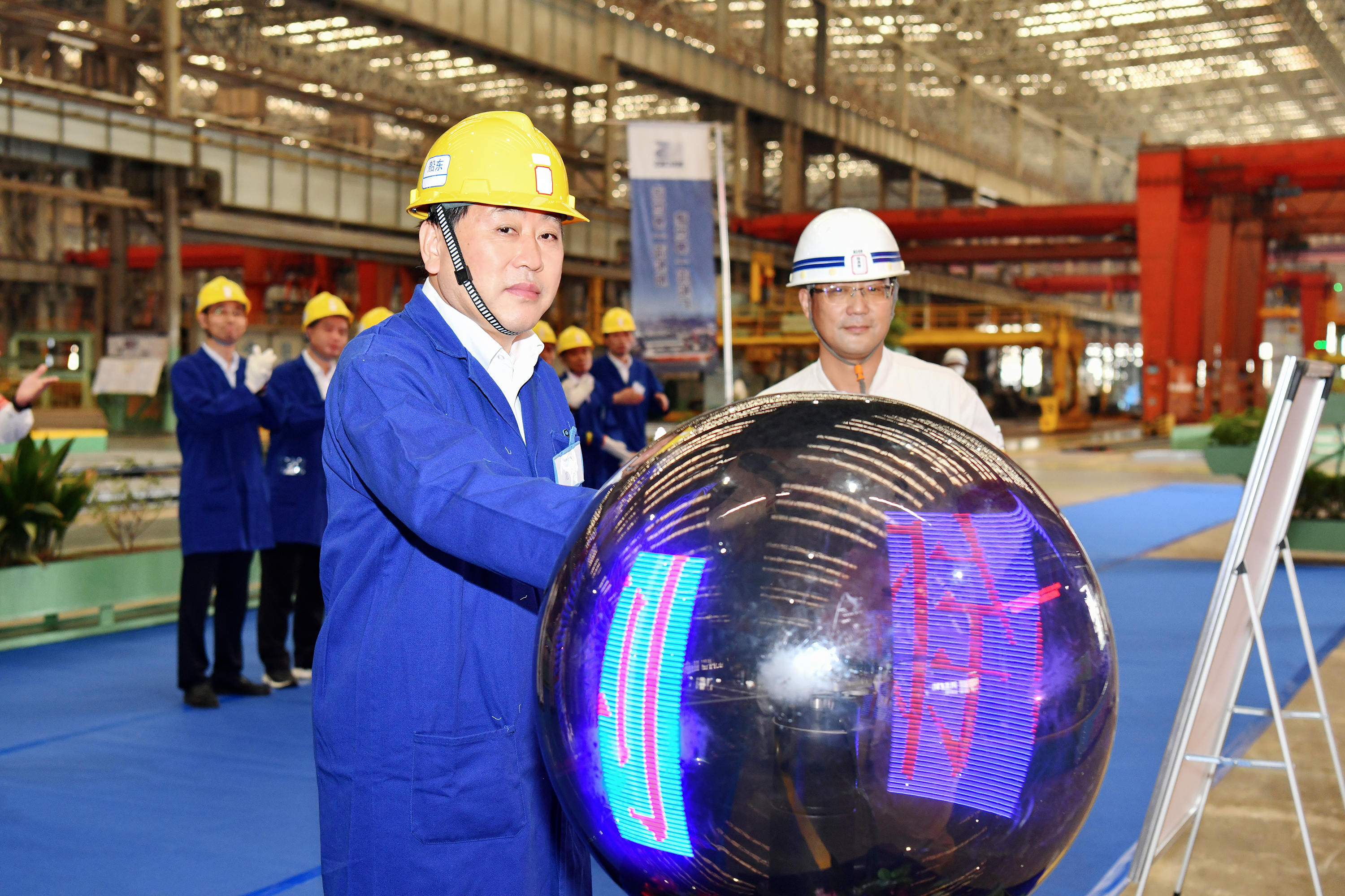 在簡(jiǎn)潔莊重的儀式現(xiàn)場(chǎng),晁陽莊重觸摸“幸運(yùn)”球后,切割機(jī)精準(zhǔn)點(diǎn)火。隨著一道弧光閃過,江蘇遠(yuǎn)洋首艘6.4萬噸超靈便型散貨船正式開工建造。