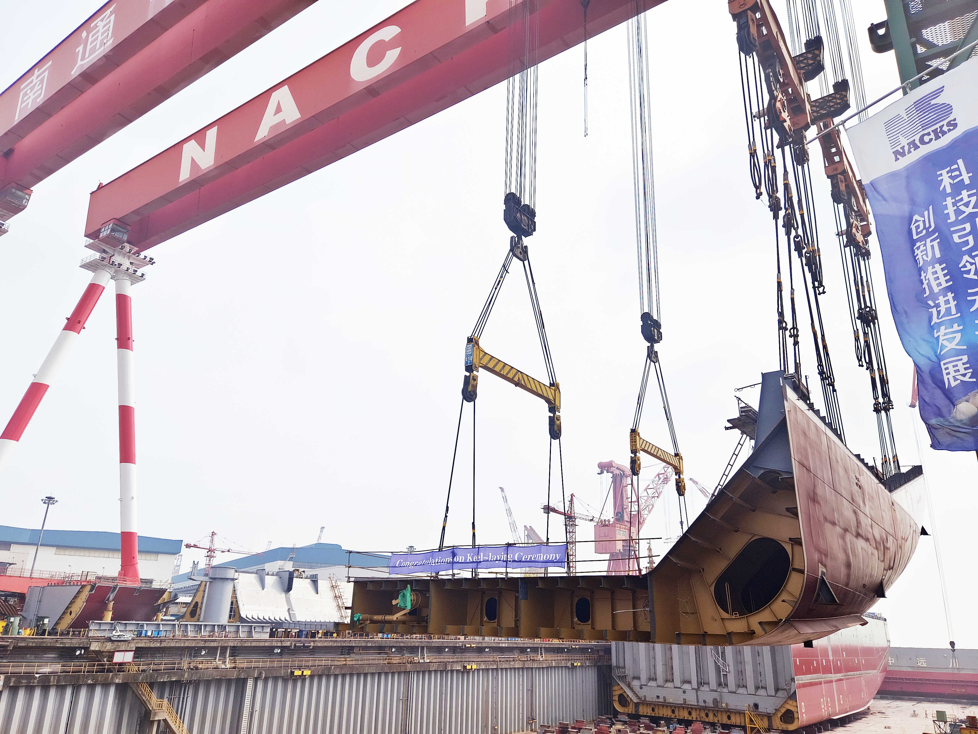 該船計劃于今年7月下旬交付,龍骨鋪設的順利推進為下一步完工交付打下良好基礎。
