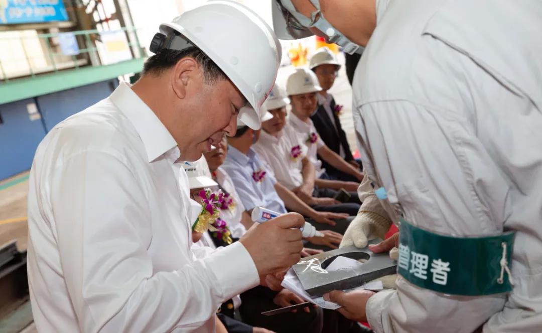 在加工車間,江蘇遠(yuǎn)洋黨委書記、董事長晁陽對鋼板進(jìn)行確認(rèn),紀(jì)委書記丁邦林按下點火按鈕,一道弧光閃爍,現(xiàn)場響起了熱烈的掌聲。副總經(jīng)理劉冰代表船東方簽署了開工證明,這標(biāo)志著新船SS297正式開工建造。